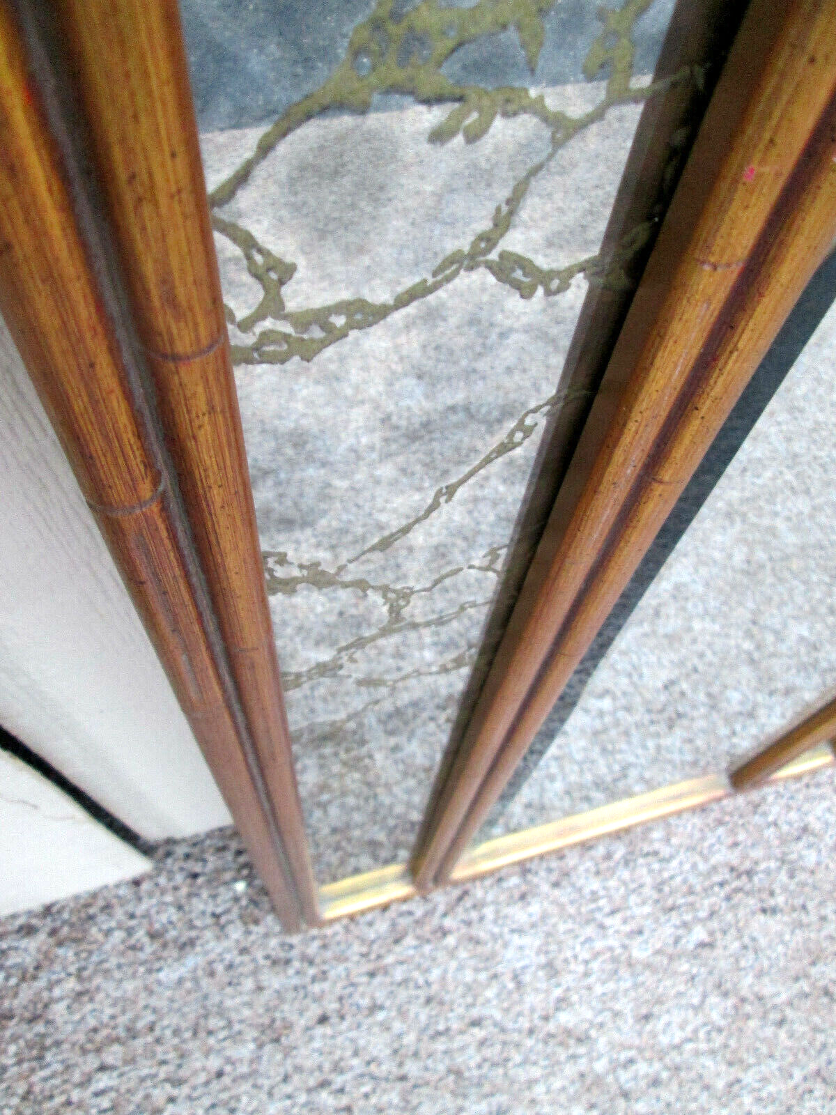 This striking Mid Century Modern mirror captures the essence of 1970s design with its elegant interplay of gold and soft silver tones, beautifully intertwined in a captivating pattern. The beveled center mirror adds a touch of sophistication, reflecting light while enhancing the charm of any room. Made in the USA, this piece not only serves as a functional mirror but also as a stunning work of art that embodies the era's unique aesthetic. Its warm hues and intricate design invite admiration, making it a perfect addition to your home.
