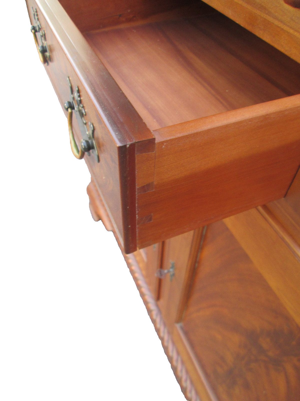 This exquisite solid cherry corner china cabinet is a testament to fine craftsmanship, showcasing the timeless elegance of the Chippendale style. Handcrafted with care, it features four beautifully grained doors adorned with crackle glass, revealing three adjustable wood shelves perfect for displaying your prized china or collectibles. With its rich medium wood tone and thoughtful design, this two-piece cabinet seamlessly blends functionality and artistry, making it a cherished addition to any dining room or living space. Built to last a lifetime, it carries with it the warmth and character that only handmade furniture can offer.