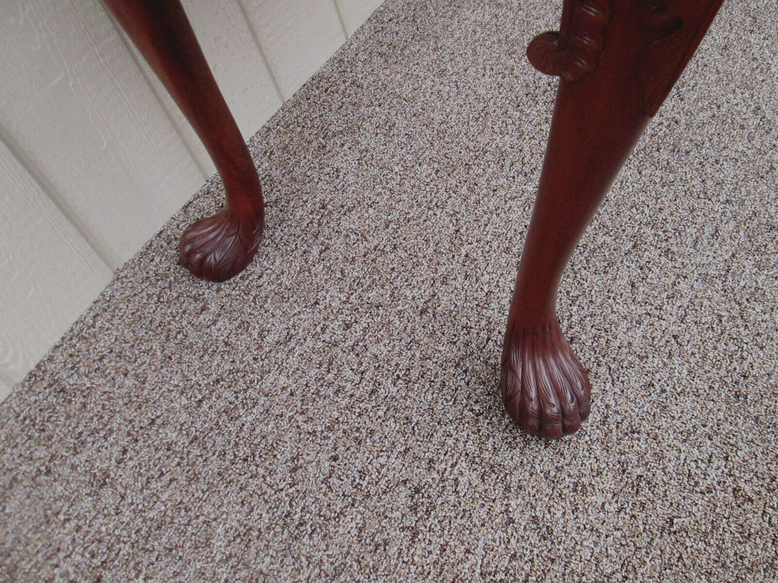 This exquisite inlaid mahogany console table beautifully embodies the timeless elegance of Chippendale design, making it a perfect addition to any room. Crafted with meticulous attention to detail, the table features intricately carved legs that lend a graceful touch while ensuring stability and durability. Its warm medium wood tone showcases the rich, natural beauty of mahogany, inviting admiration and use in your home. Whether serving as a library desk, sideboard, or a stand for cherished decor, this piece is not just furniture; it's a testament to quality craftsmanship that can be treasured for generations.