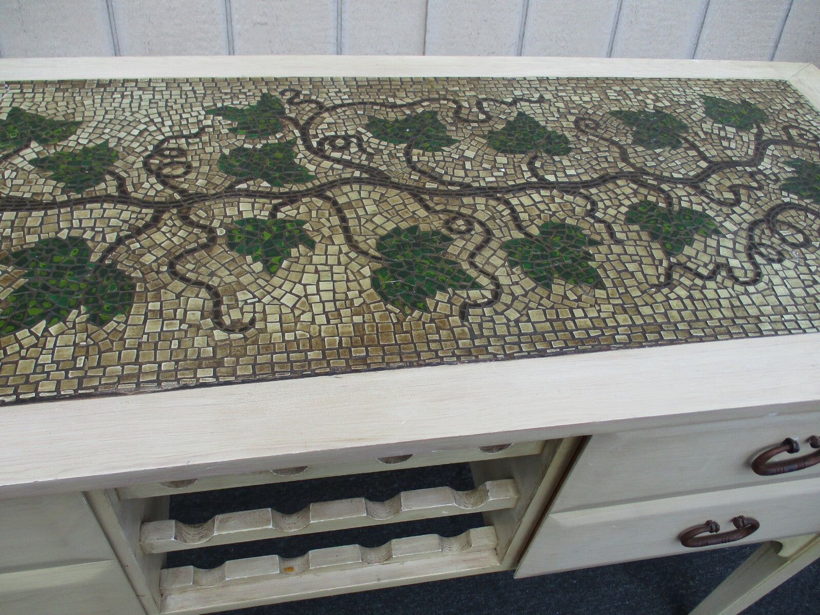 This charming sideboard server cabinet embodies a romantic shabby style that adds a touch of warmth to any dining room or living space. Handmade with care, it features a delightful multicolored finish that showcases the natural beauty of the wood, while the two spacious drawers offer practical storage. The built-in wine rack invites you to entertain with ease, making this piece not only a functional addition but also a conversation starter, perfect for family gatherings or intimate dinners. Its sturdy construction and timeless design ensure that it will be a beloved fixture in your home for years to come.