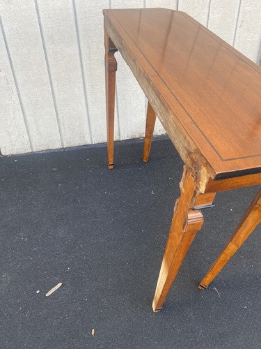 This elegant mahogany Hepplewhite console table exudes timeless charm and classic craftsmanship, making it a delightful addition to any home. Its clean lines and tapered legs reflect the refined style of the Hepplewhite period, while the rich mahogany finish highlights the natural beauty of the wood. Although it shows some wear on the top, this only adds character to the piece, telling its story as a well-loved server perfect for entertaining or display. Crafted with care, it stands ready to be a centerpiece in your home for years to come.