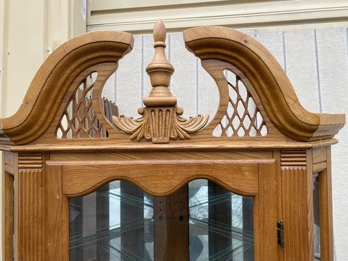 65091 Oak Corner Curio Cabinet with Plate Glass Shelves (BN 05)