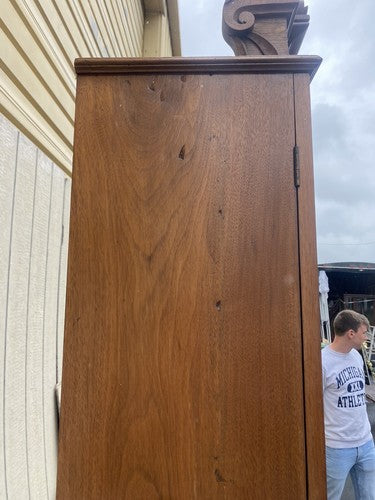 65390 Antique Victorian Burled Walnut Cylinder Desk w/ Bookcase Top and keys