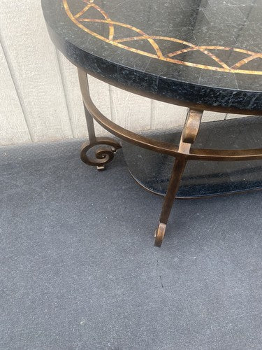 This elegant console table blends modern design with classic materials, showcasing a stunning marble top that captures the light beautifully. Supported by a sturdy iron base, the table features intricate ebony handles that add a touch of warmth and sophistication. Its multicolored surface not only enhances its aesthetic appeal but also tells a story of craftsmanship that will elevate any room. Perfect as a sideboard or an entryway statement piece, this console table invites both functionality and style into your home.