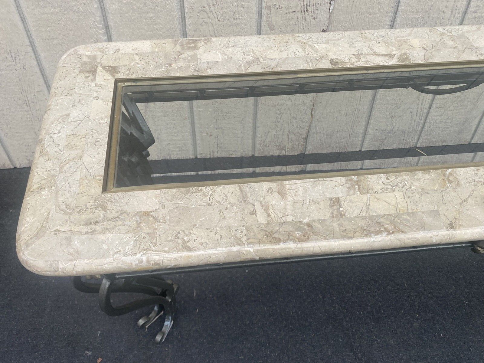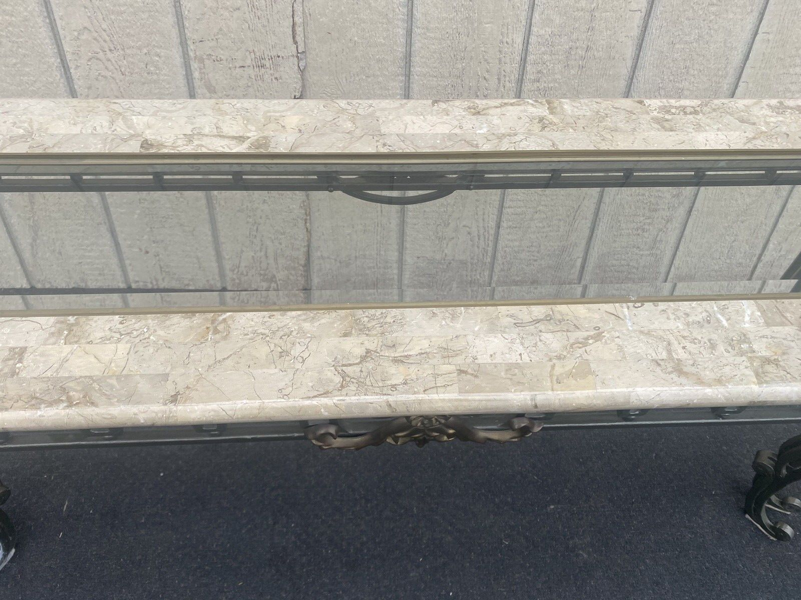 This modern console table showcases a beautiful marble top accentuated by a glass insert, creating a stunning interplay of materials that invites admiration. Crafted with quality iron, the piece is not only visually striking but also remarkably sturdy, ensuring its place in your home for years to come. The elegant design effortlessly bridges contemporary aesthetics with timeless charm, making it an ideal addition to any hallway or living area. With its unique character and thoughtful craftsmanship, this console table is sure to become a cherished focal point in your space.