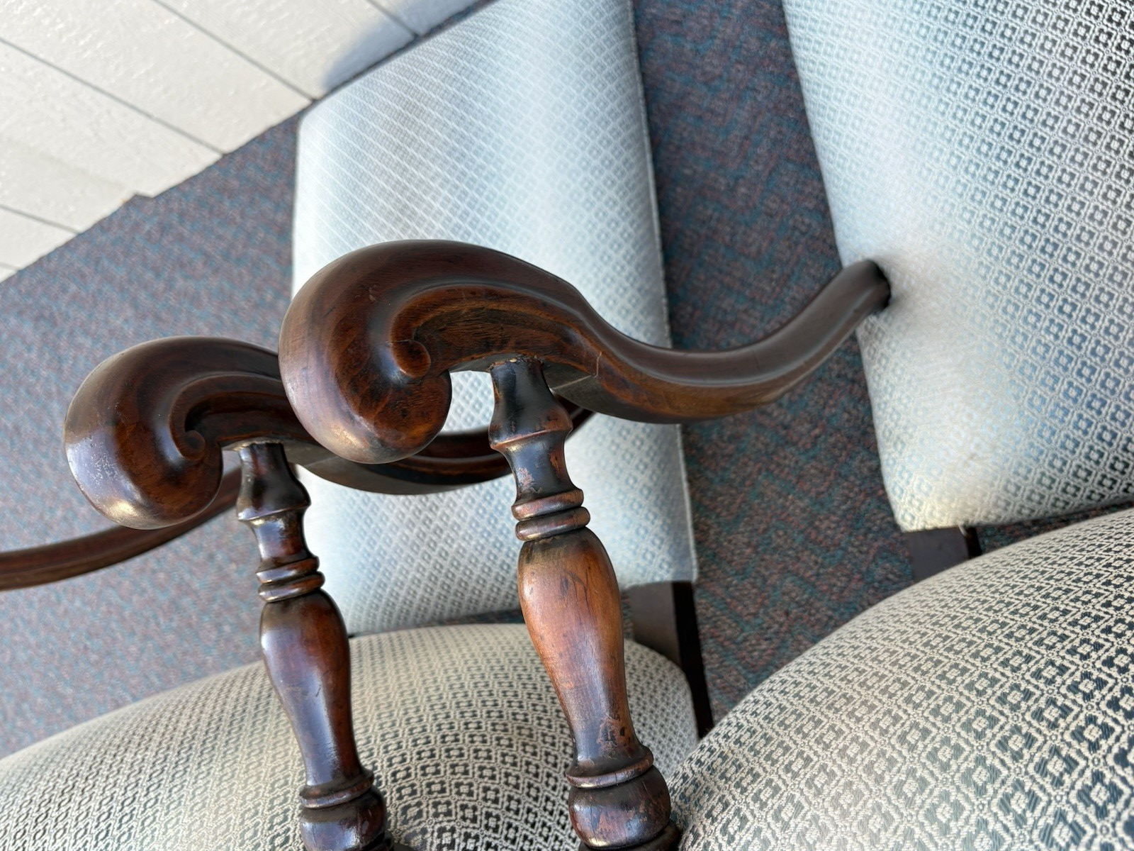 This exquisite pair of antique throne armchairs, crafted by hand from rich mahogany, showcases the timeless elegance of Jacobean design. Adorned with intricate carvings, each chair tells a story of craftsmanship from the 1920s, offering both comfort and a touch of history to any room. Their vibrant, multicolored upholstery complements the warm wood tones, making them not only a seating solution but also a captivating focal point in your home. Embrace the charm and character that these unique pieces bring, perfect for gatherings or quiet moments alike.