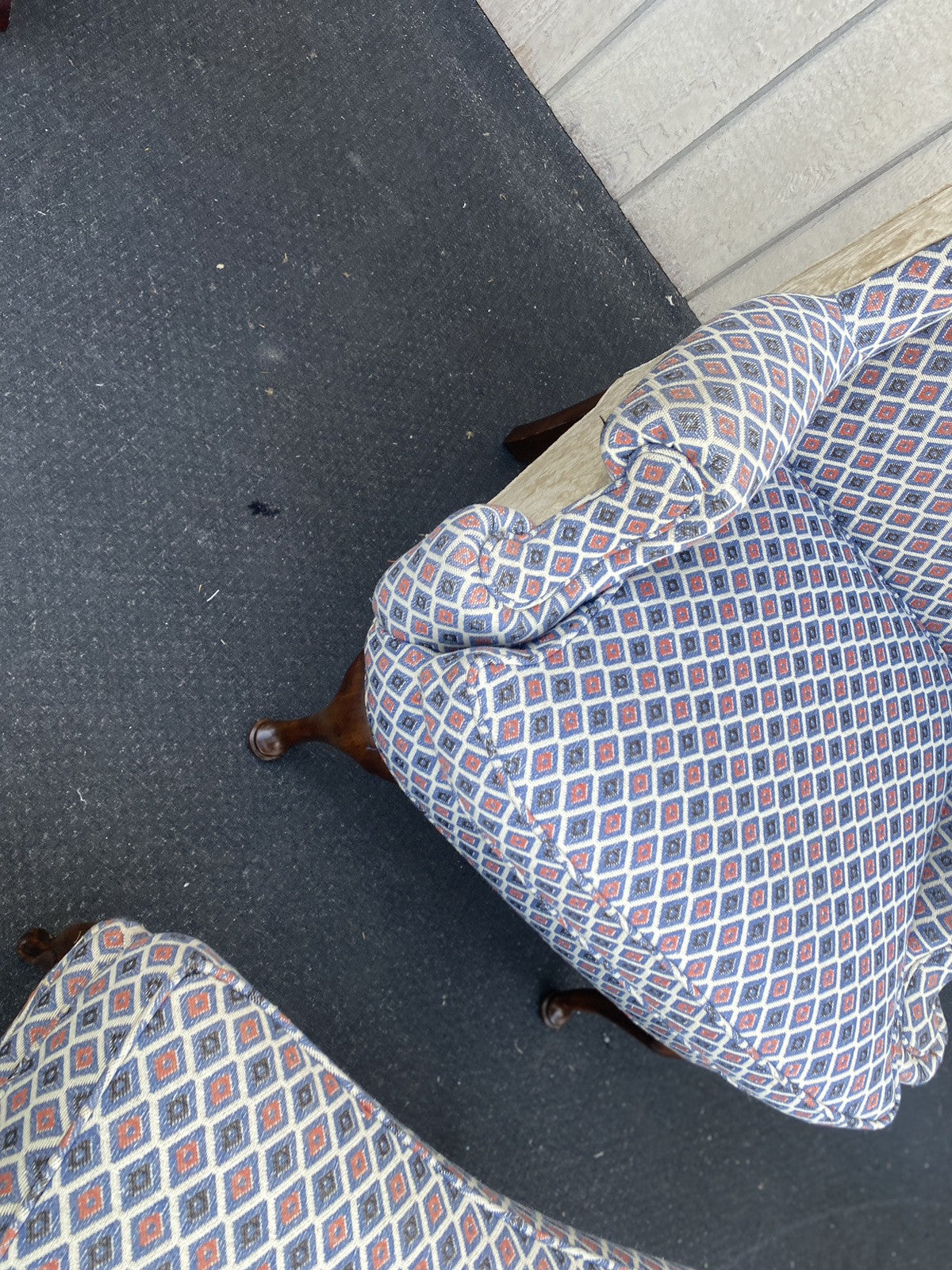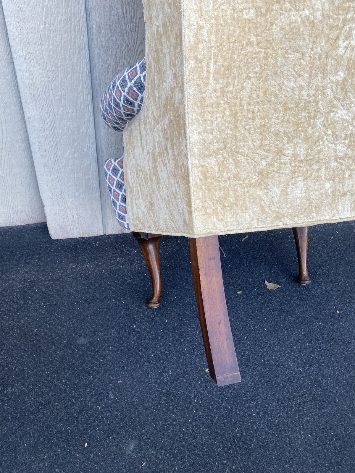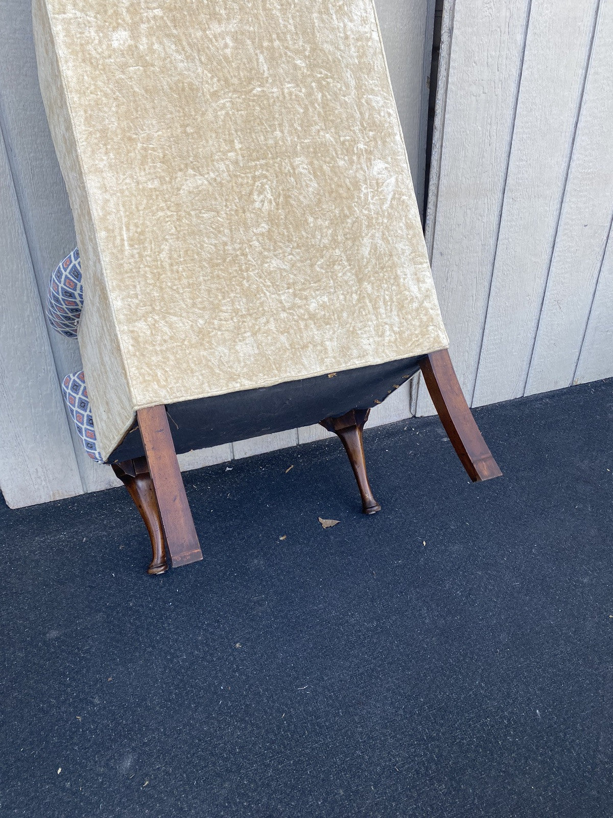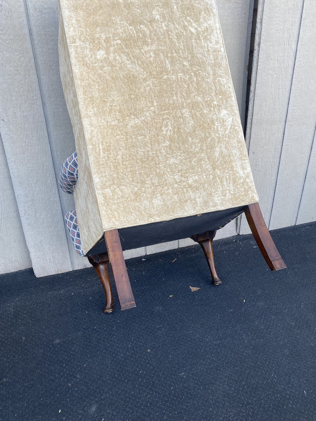 This charming Wellington Hall Bergere armchair with accompanying ottoman showcases the elegance of Queen Anne design, blending timeless style with comfort. Crafted from rich mahogany, its sturdy construction and inviting upholstery in a delightful multicolor palette invite relaxation in any room. The meticulous craftsmanship shines through in the gentle curves and refined details, making this piece not just a seat, but a statement of sophistication that adds warmth and character to your home. Perfect for curling up with a book or enjoying a quiet moment, it embodies the essence of cozy, well-loved furniture.