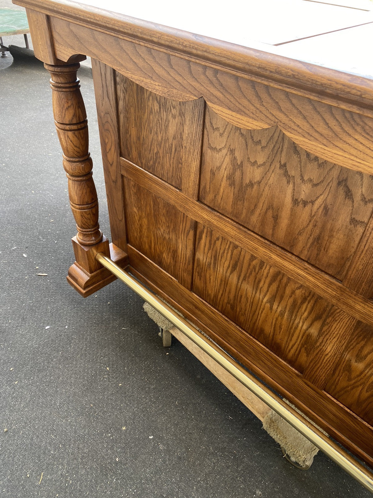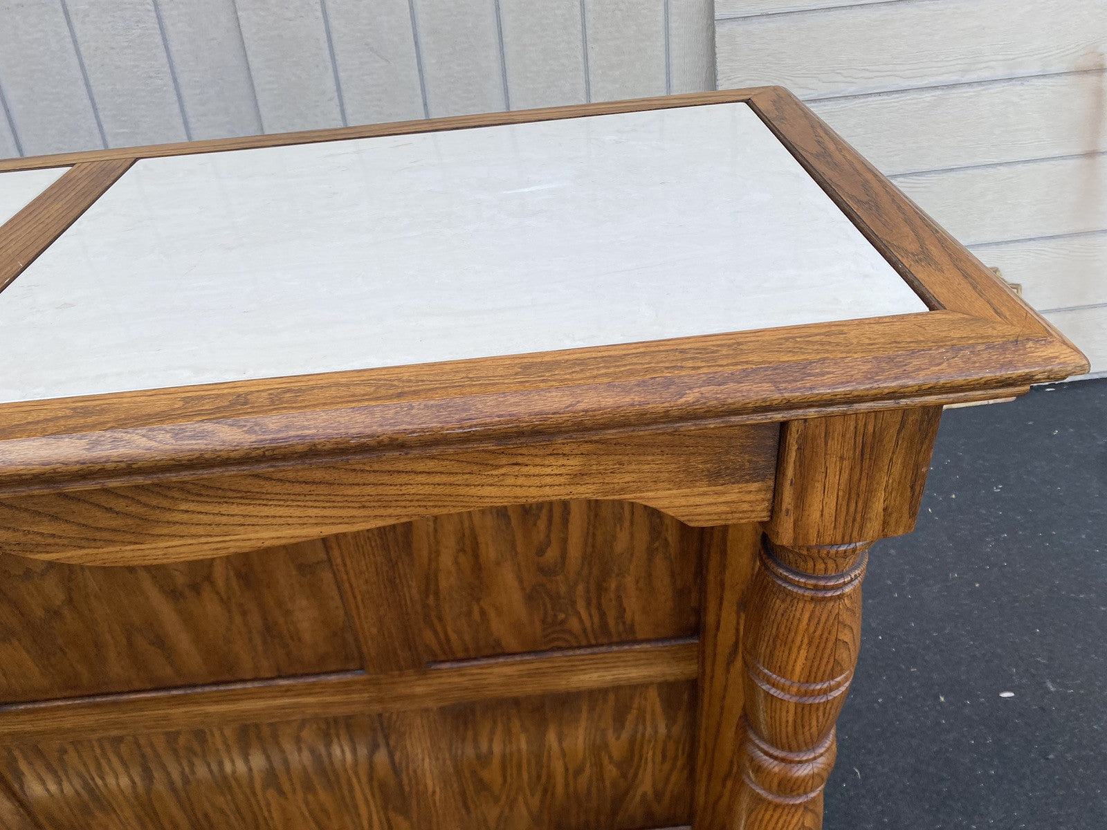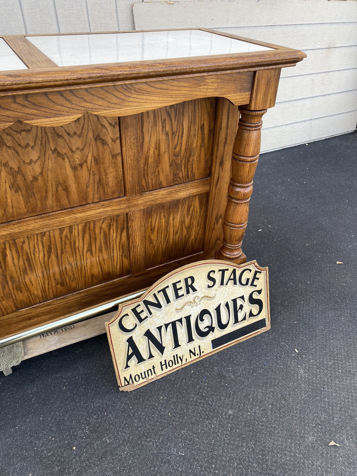 Crafted from rich oak, this charming bar liquor cabinet exudes a sense of traditional warmth and hospitality, making it a perfect centerpiece for gatherings. The exquisite tile top, featuring two stunning inserts, adds a touch of unique character, while the two matching swivel barstools invite friends and family to sit and enjoy a conversation. With its sturdy construction and timeless design, this piece is not just furniture; it’s a gateway to cherished memories and celebrations in your home.
