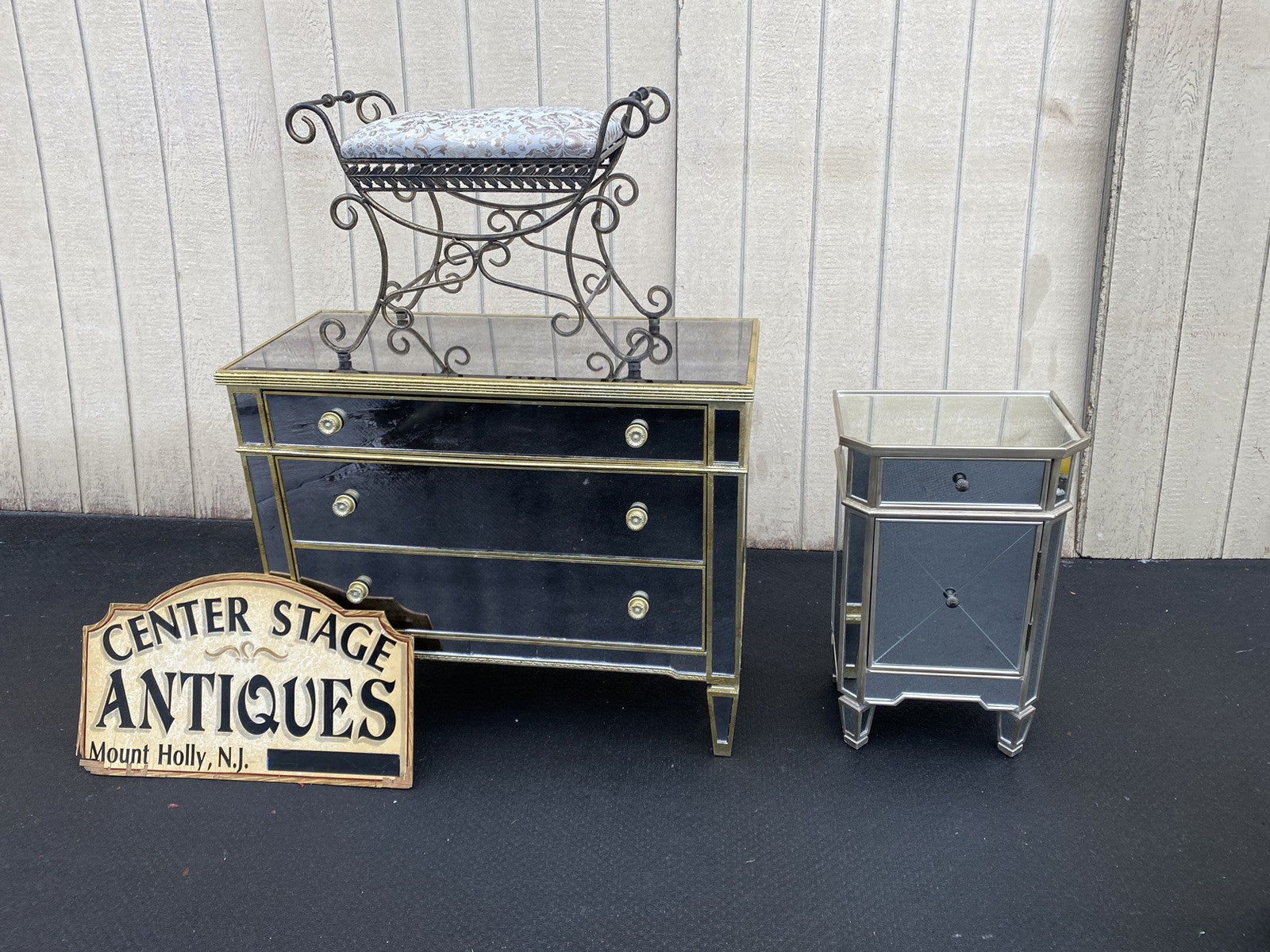 66351 Modern Mirror Mirrored Nightstand End Table Stand