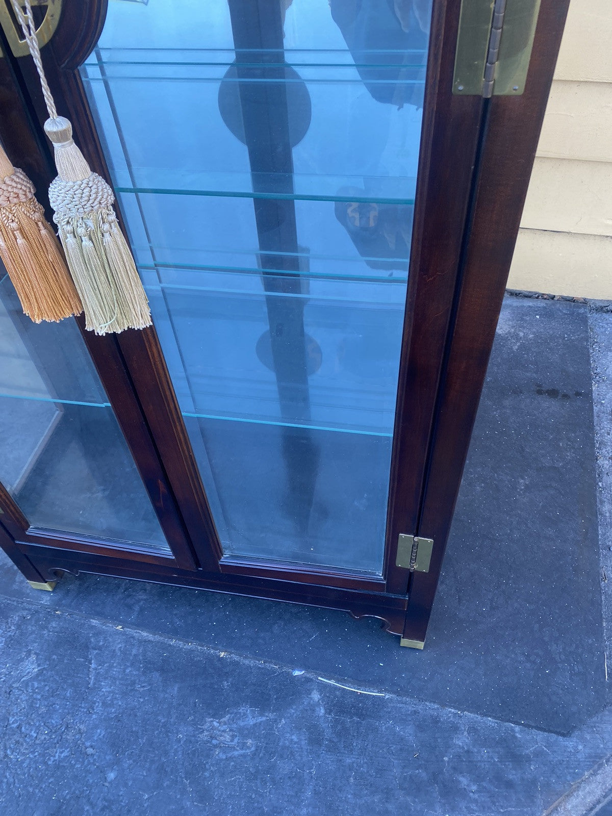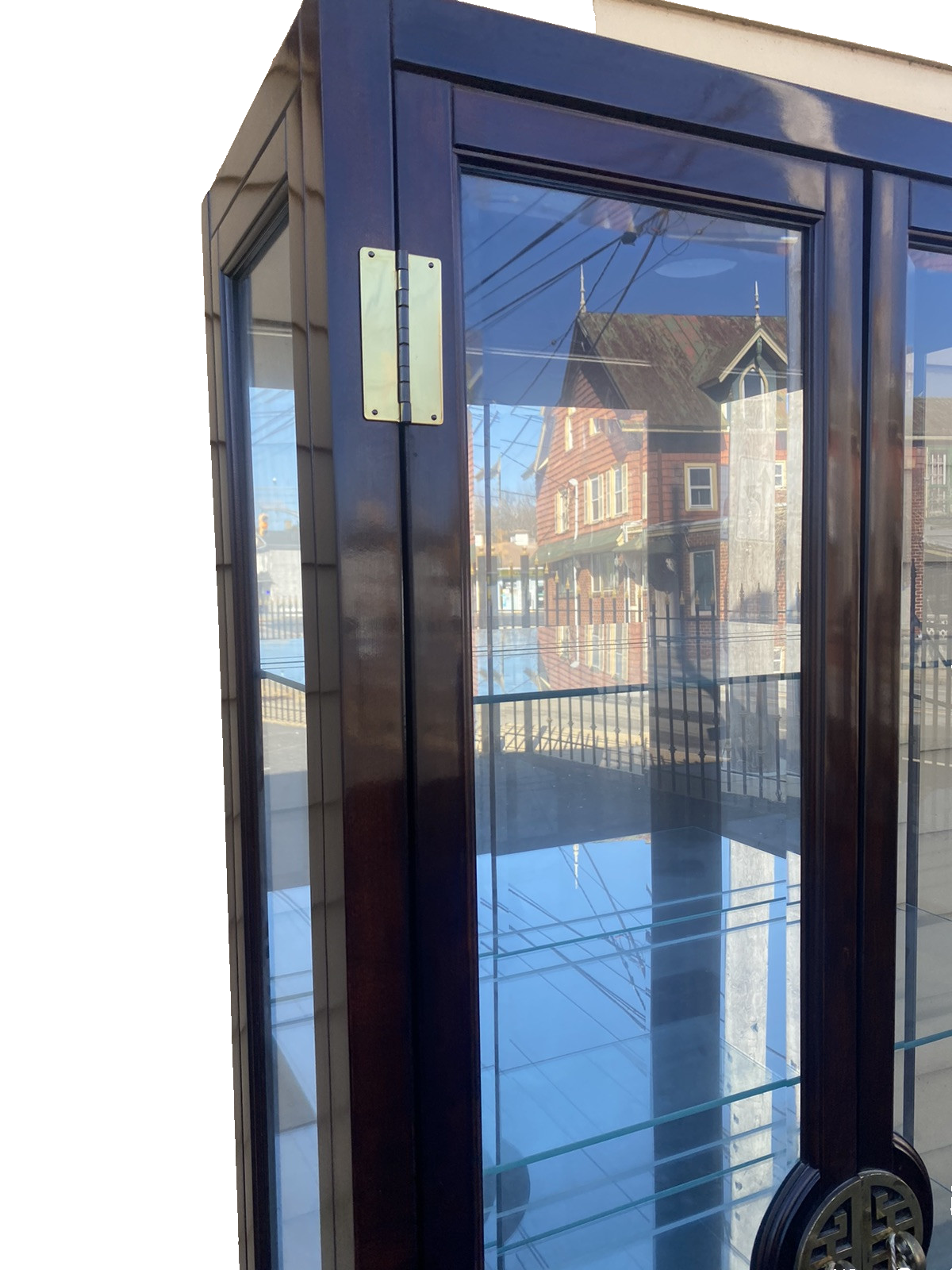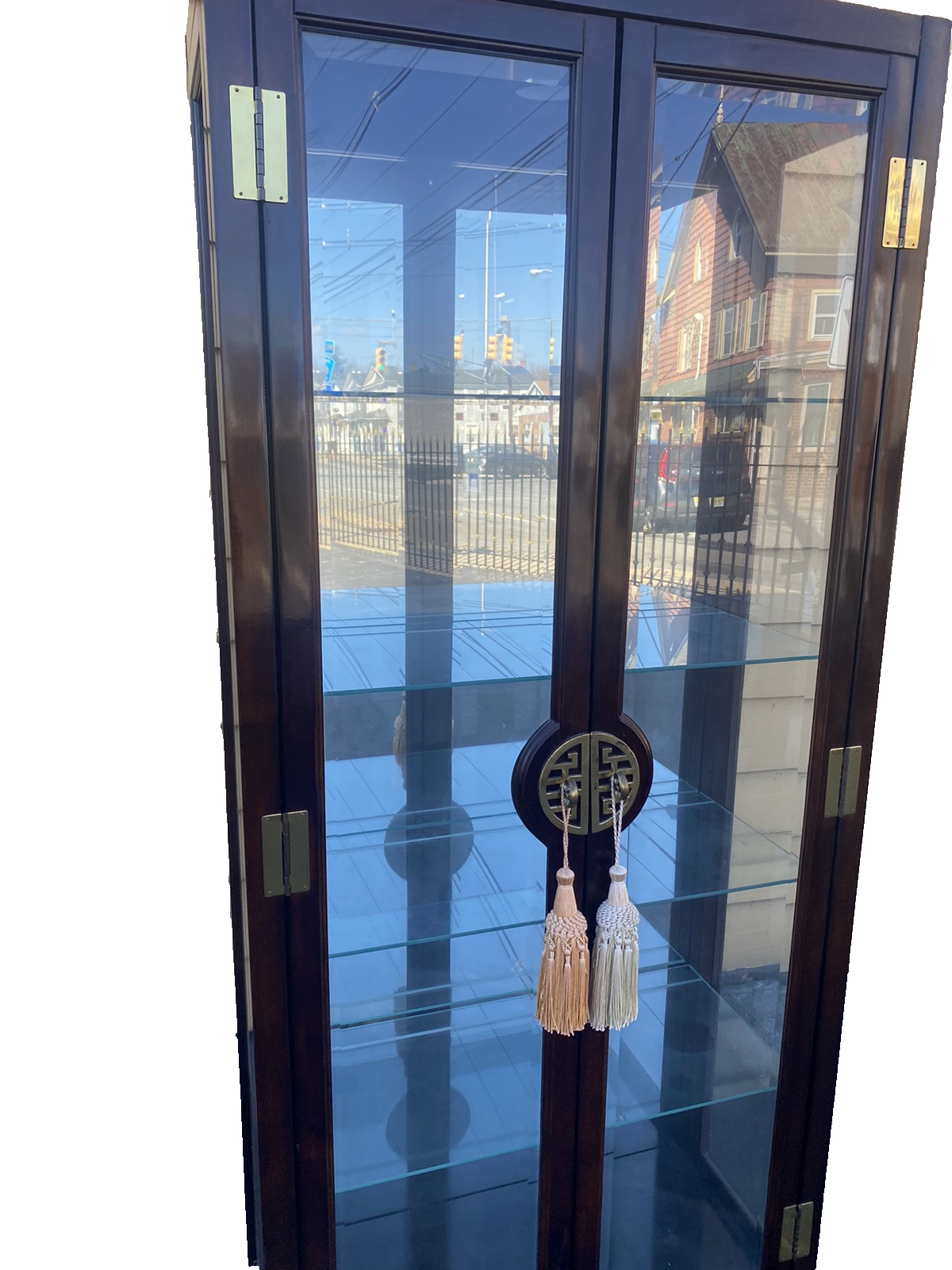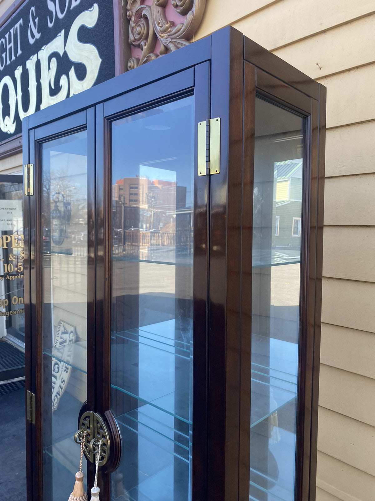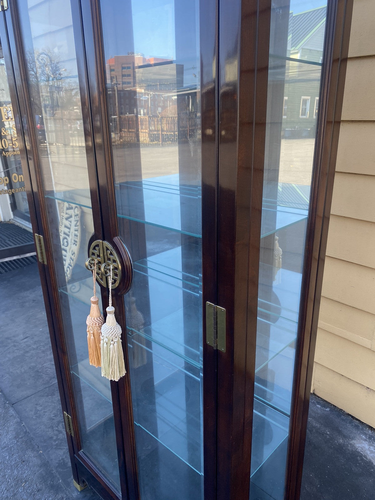 This exquisite American Oriental curio cabinet exudes a timeless elegance that beautifully showcases your cherished collectibles. Crafted with meticulous attention to detail, its rich wood grain and intricate carvings reflect a blend of cultural artistry and traditional craftsmanship. The cabinet's tall, slender design allows it to serve as a striking focal point in any room, while its sturdy construction ensures it will be a cherished part of your home for generations to come. With its warm character and inviting presence, this piece is not just furniture, but a storytelling vessel for your most treasured items.