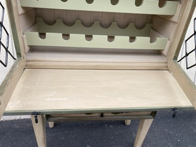 Embrace the charm of rustic elegance with this unique wine rack kitchen cabinet, a perfect blend of functionality and style. Crafted from sturdy wood, its multicolored finish showcases the natural beauty of the material, while the pull-out workspace adds a touch of practicality for your dining or entertaining needs. This piece not only holds your finest bottles but also serves as a delightful focal point in your kitchen, reflecting a warm, inviting atmosphere that only a family-owned antique can provide.