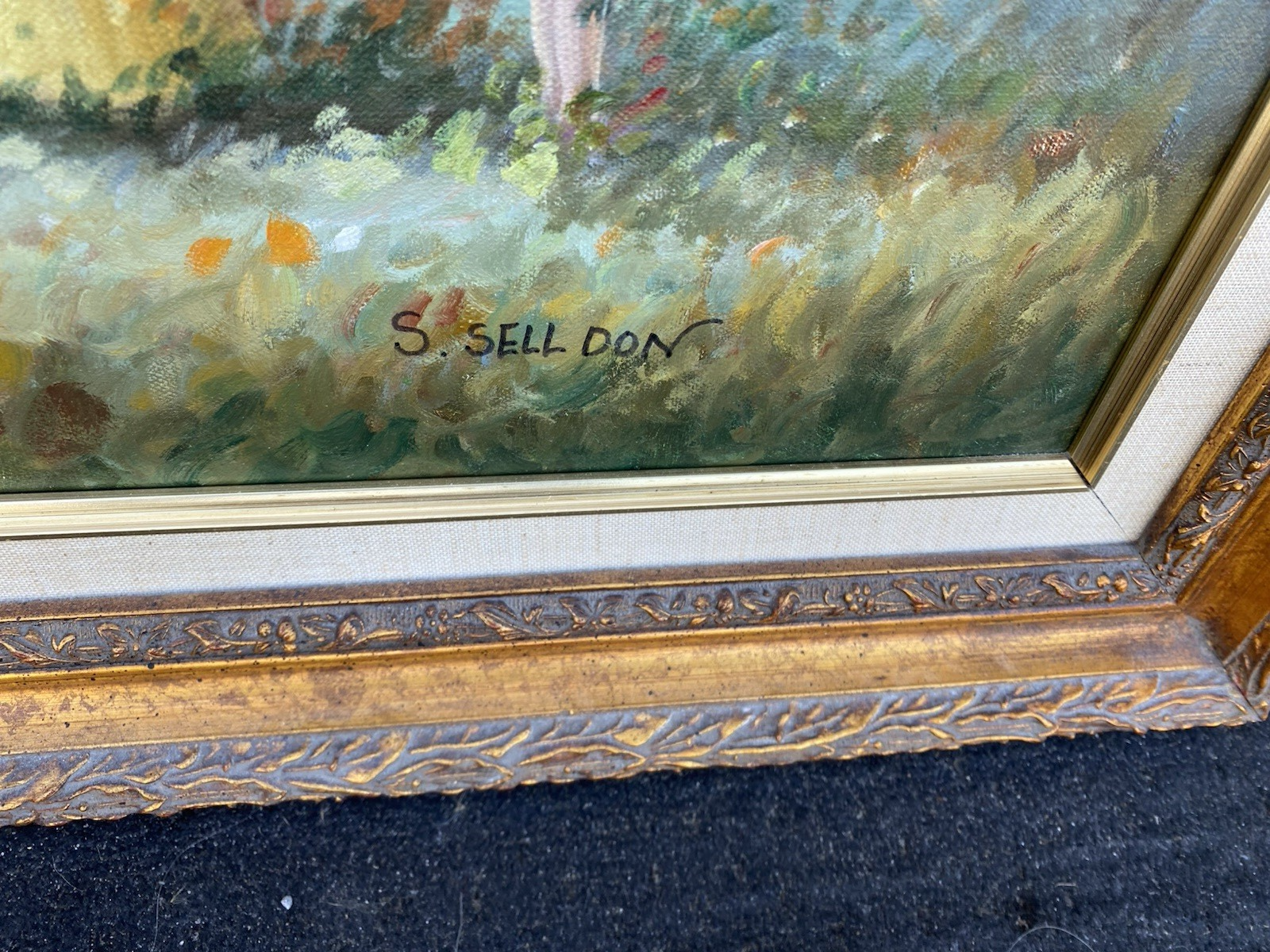 66563 Oil Painting of Lake and Bridge on Canvass Picture Signed S SELL DON