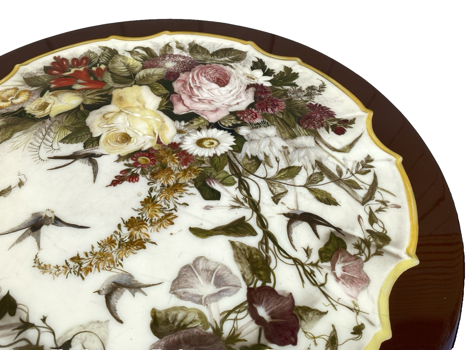 This charming floral pie crust lamp table stand showcases a delightful blend of elegance and functionality, making it a perfect accent for any room. Crafted with meticulous attention to detail, its scalloped edge and intricate floral motifs reflect the craftsmanship of a bygone era, inviting warmth and character into your space. Sturdy yet graceful, this table not only serves as a practical surface for your favorite lamp or decorative pieces but also tells a story of timeless artistry and family gatherings. Embrace the nostalgic charm it brings to your home.