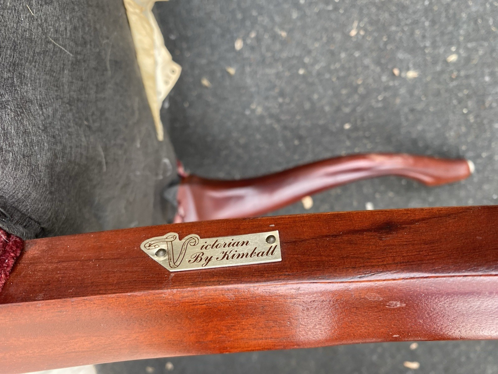This exquisite pair of Kimball mahogany armchairs showcases the timeless elegance of Victorian design, featuring rich burgundy upholstery that invites you to sit back and relax. Handcrafted with attention to detail, these chairs boast sturdy construction and intricate woodwork that reflect the craftsmanship of a bygone era. Perfect for adding a touch of sophistication to any space, they embody the warmth and charm of a family-owned legacy, making them a wonderful addition to your home.