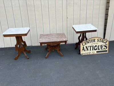66777 Antique Victorian Walnut Marble Top Lamp Table Stand