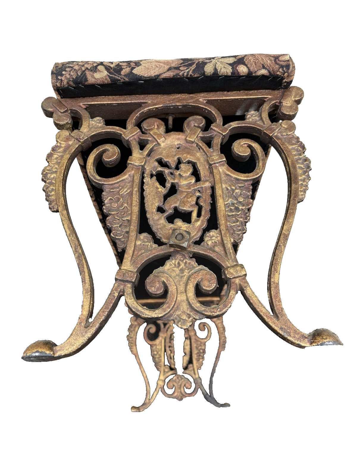 This enchanting wrought iron window bench, crafted in the United States during the Victorian era, showcases delightful fairy figures on each side, adding a whimsical touch to any space. The intricate detailing and vibrant multicolor finish reflect the artistry of its handmade construction, making it a charming focal point for your garden or entryway. Sturdy and well-preserved, this bench not only invites relaxation but also tells a story of craftsmanship that transcends time, perfect for families looking to add a unique piece of history to their home.