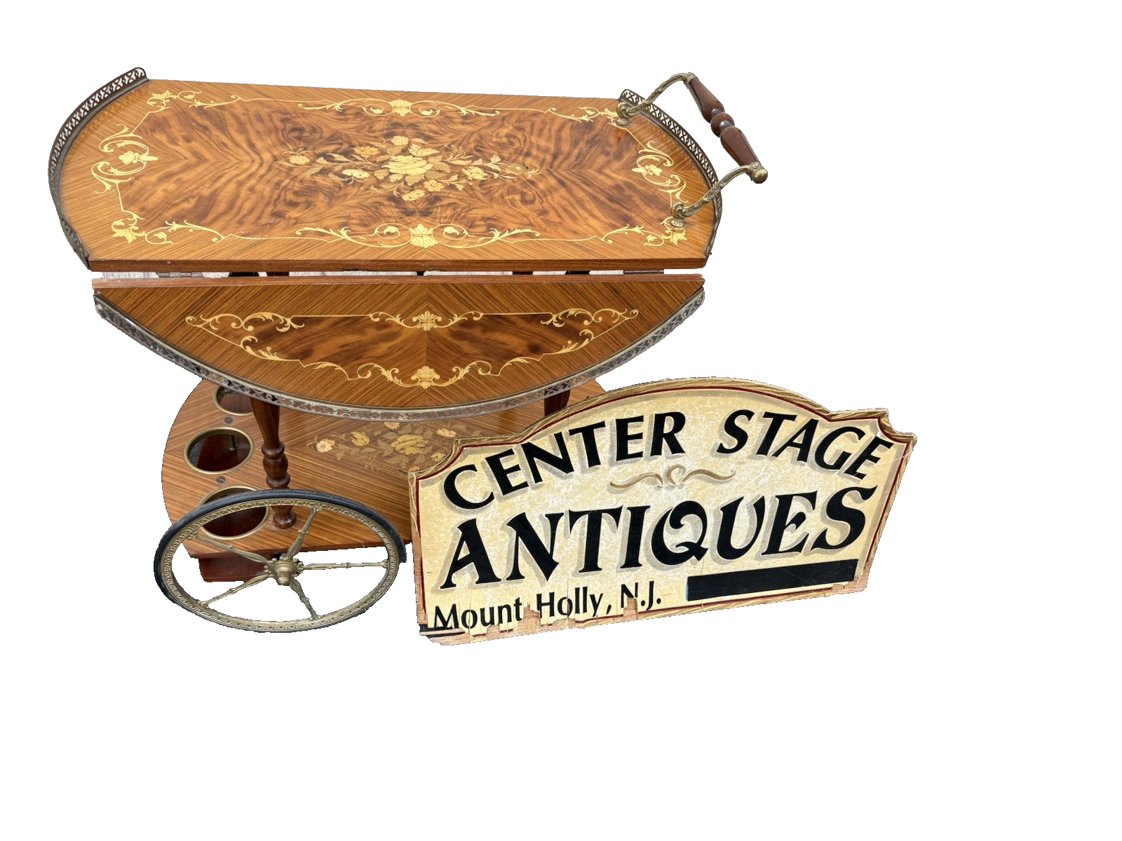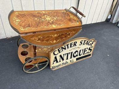 66844 Italian Inlaid Bar Cart Liquor Cabinet Teacart