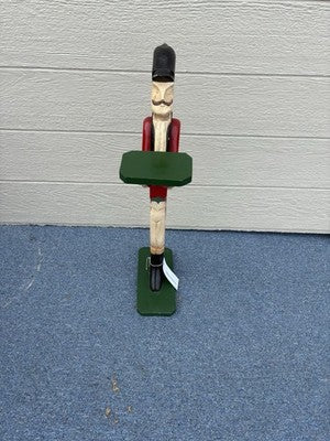 This charming butler card holder stand is a delightful blend of functionality and artistic craftsmanship, perfect for adding a touch of character to any room. Handcrafted from wood, it features a beautifully multi-colored finish that reflects its unique history and the care infused into its creation. Standing at 32 inches tall, this piece not only serves as a practical organizer for cards but also as a decorative statement that invites conversation and nostalgia. A true testament to vintage American design, it's a lovely addition to any home that values both form and function.