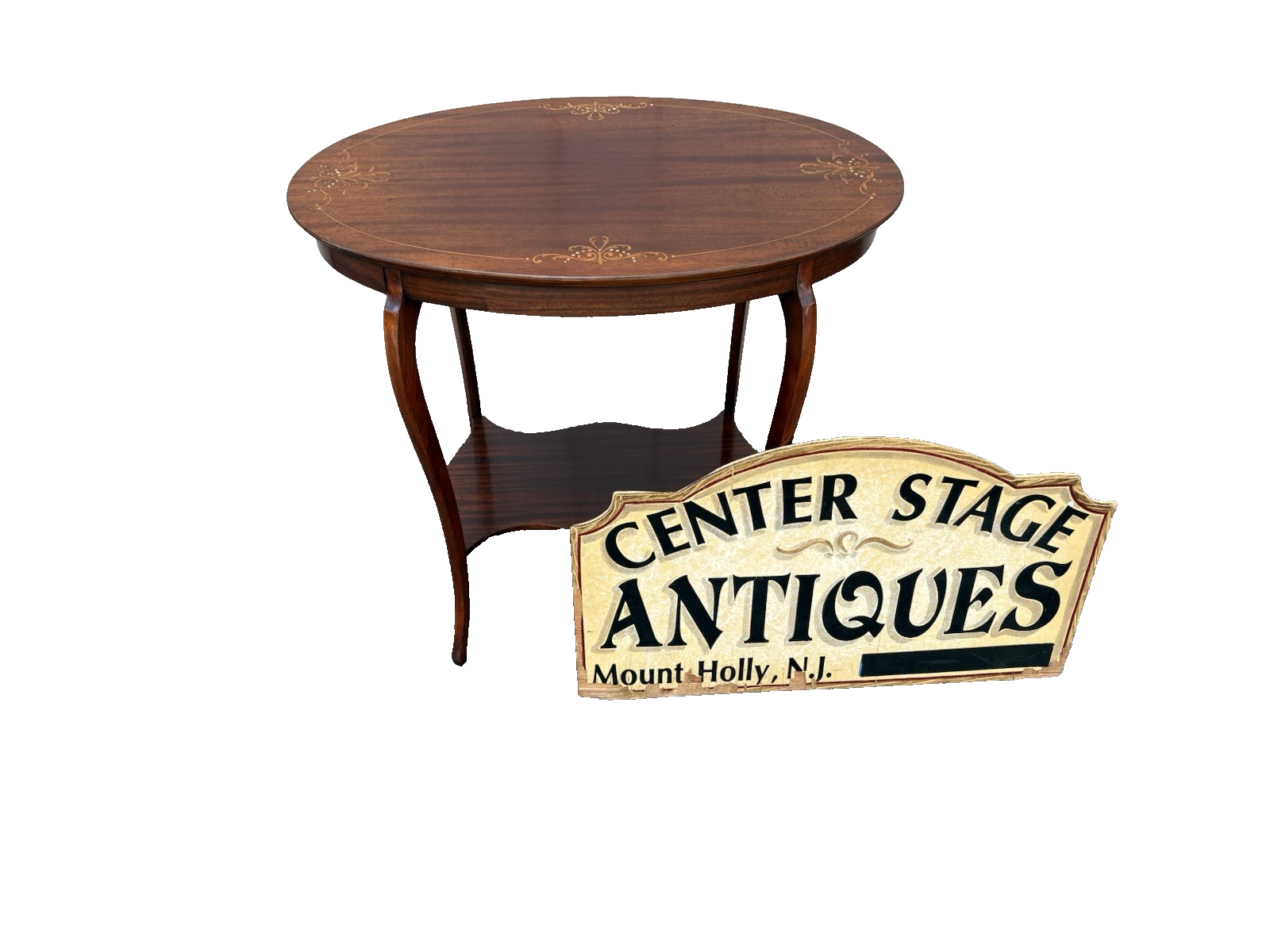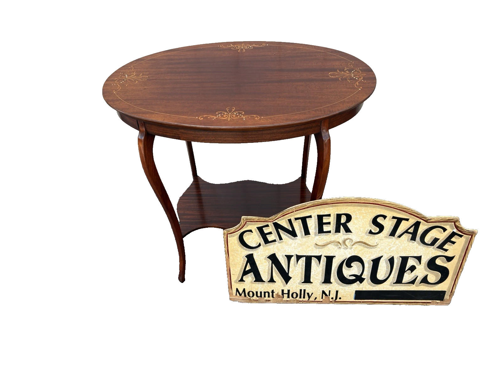 This exquisite oval lamp table stand showcases the artistry of mid-20th century craftsmanship, featuring intricate mother of pearl inlays that catch the light in a dazzling display. The rich mahogany construction not only adds warmth but also ensures durability, making it a stunning yet practical addition to your home. With its elegant silhouette and meticulous detailing, this piece is perfect for elevating any corner of your living space, inviting a touch of vintage charm into your everyday life.