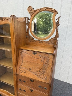 67053 Antique Victorian Oak Side By Side Desk Bookcase