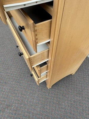 This elegant high chest dresser by Reganni Furniture showcases a refined blend of modern design and classic craftsmanship. The sturdy construction features beautifully dovetailed drawers that glide effortlessly, reflecting the quality and care that went into its creation. With a sleek silhouette and warm wood tones, this piece not only offers practical storage but also serves as a striking focal point in any room. Its well-maintained condition speaks to its enduring appeal, making it a cherished addition to your home.
