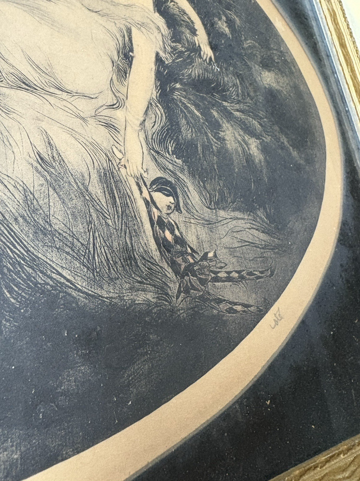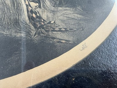 This charming Deco print by the artist Cote' captures the whimsical essence of French dolls, evoking a sense of nostalgia that transports you to a bygone era. Crafted between 1925 and 1949, this piece reflects the unique realism of the period, showcasing delicate details and a graceful composition. While it carries some charming imperfections that speak to its history, these minor flaws only add to its character, making it a delightful addition to any art collection or a lovely conversation starter in your home. Embrace the spirit of the past with this enchanting print that celebrates the artistry of its time.