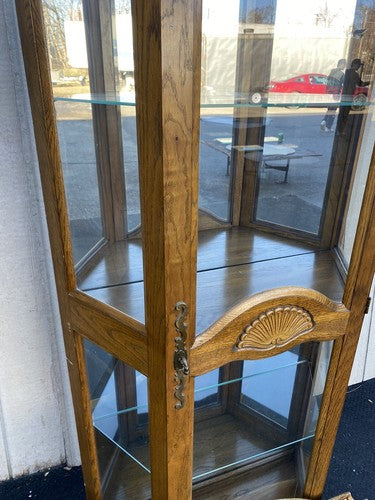 This charming oak curio china cabinet showcases the timeless craftsmanship of traditional American furniture. Handcrafted with care, its sturdy construction and warm, rich tones invite you to display your cherished collectibles while offering a touch of elegance to any room. The inviting interior, complete with plate glass shelves and a gentle built-in light, creates a stunning backdrop for your treasures, making this cabinet not just a storage piece, but a beautiful focal point in your home.