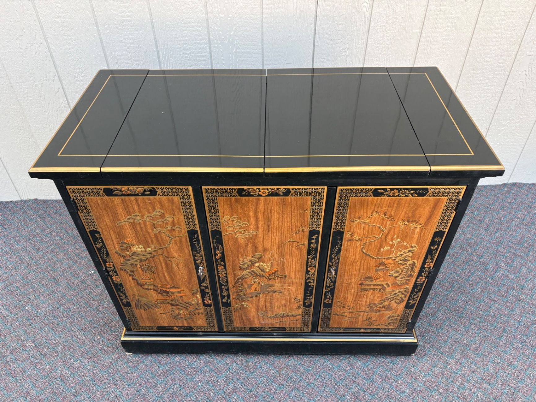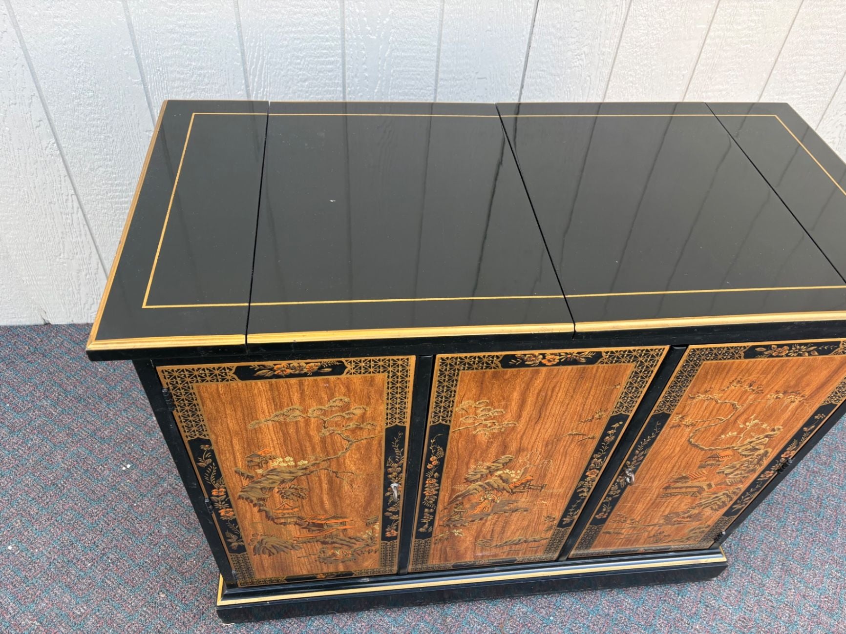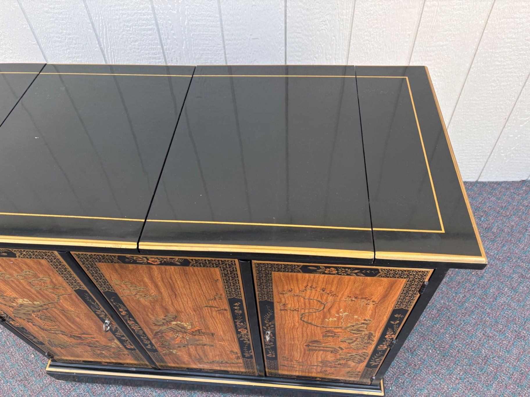 | Features | Expandable top, Hand-painted panels, Original brass hardware, Glossy lacquer finish |