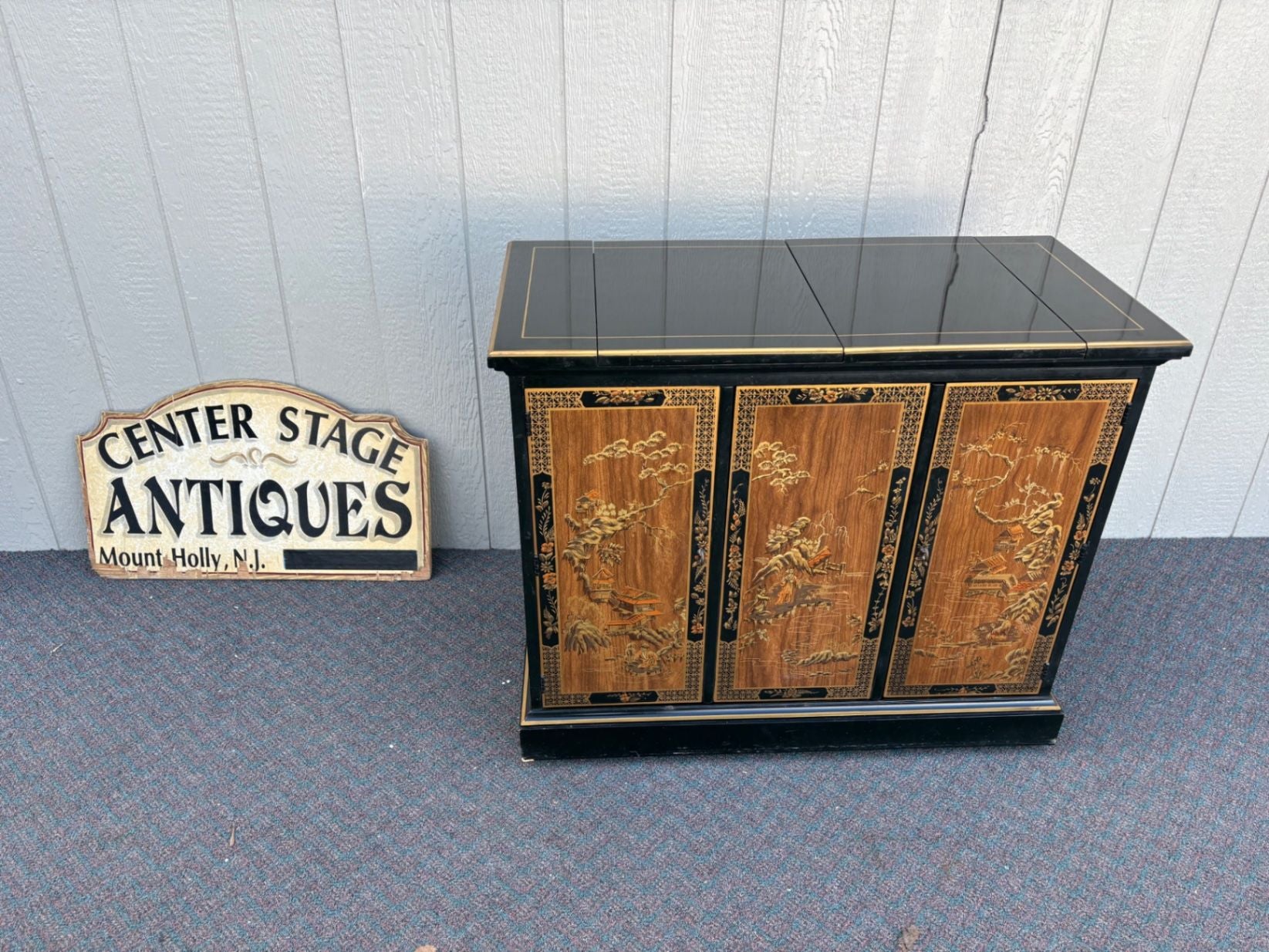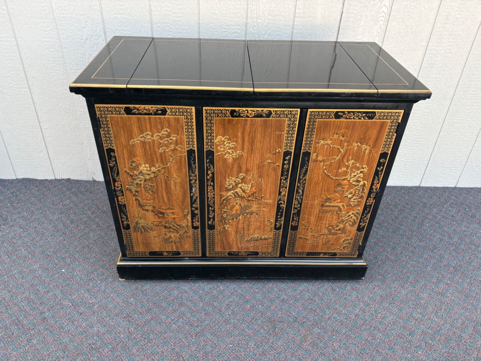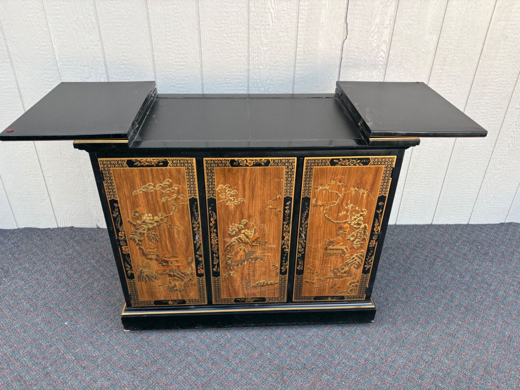 | Features | Expandable top, Hand-painted panels, Original brass hardware, Glossy lacquer finish |