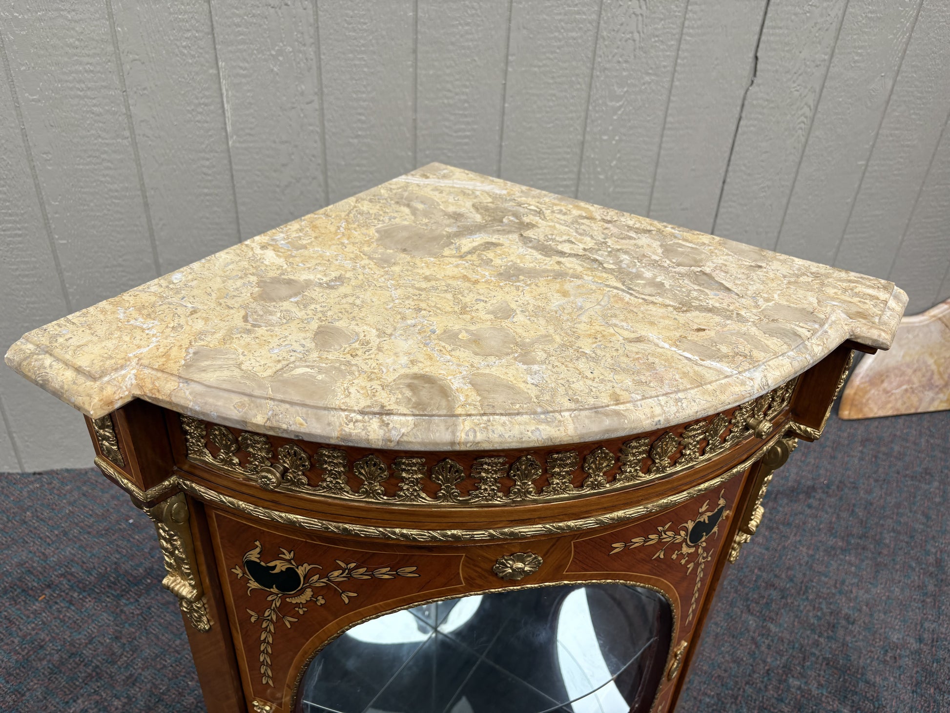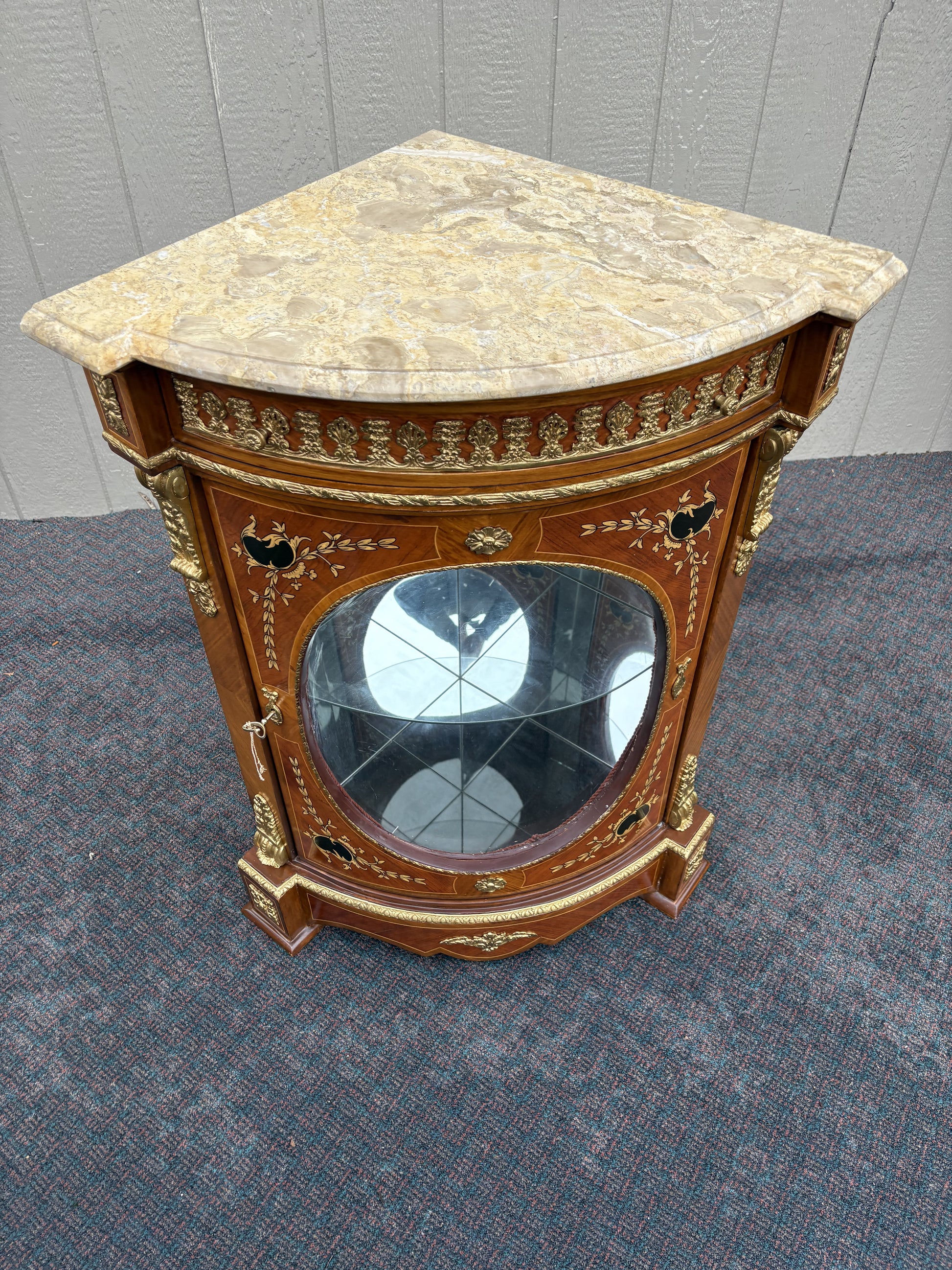 Elegant Marble Top Corner Cabinet with Ormolu Accents