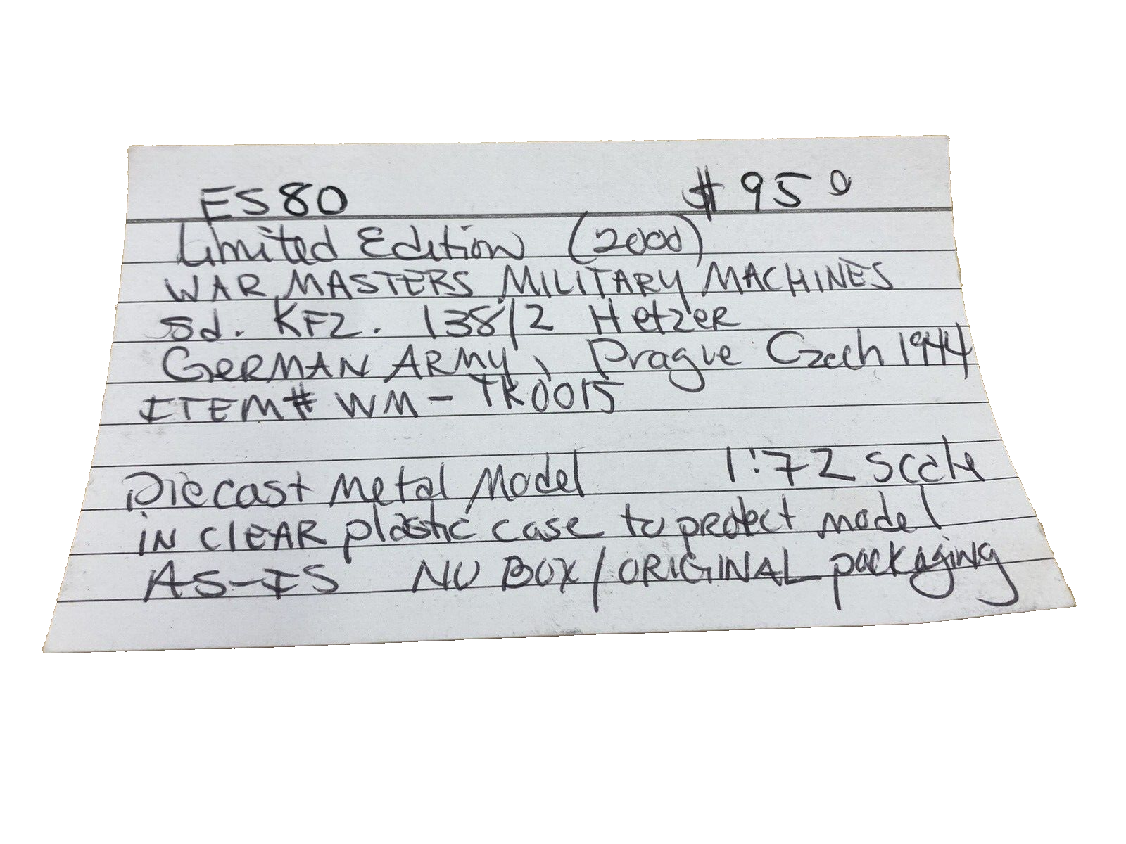 ES 180 Military LIMITED EDITION Sd.KFZ 138/2 HETZER Diecast Tank 7" x 3" x 2 3/4