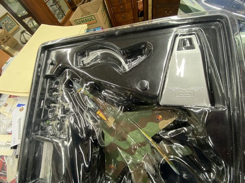 This remarkable Corgi diecast model of the MIG 29 Fulcrum, crafted by Vladimir Komarow in 1990, captures the essence of East German aviation history with its intricate detailing and vibrant multi-color finish. As a limited edition piece, numbered 65 of only 2060 made, it reflects both fine craftsmanship and a dedication to authenticity that enthusiasts will appreciate. Housed in its original box, this vintage aircraft not only represents a significant era in military aviation but also serves as a nostalgic reminder of childhood adventures in flight. A true treasure for collectors and history buffs alike, this model brings a piece of the past into your home.