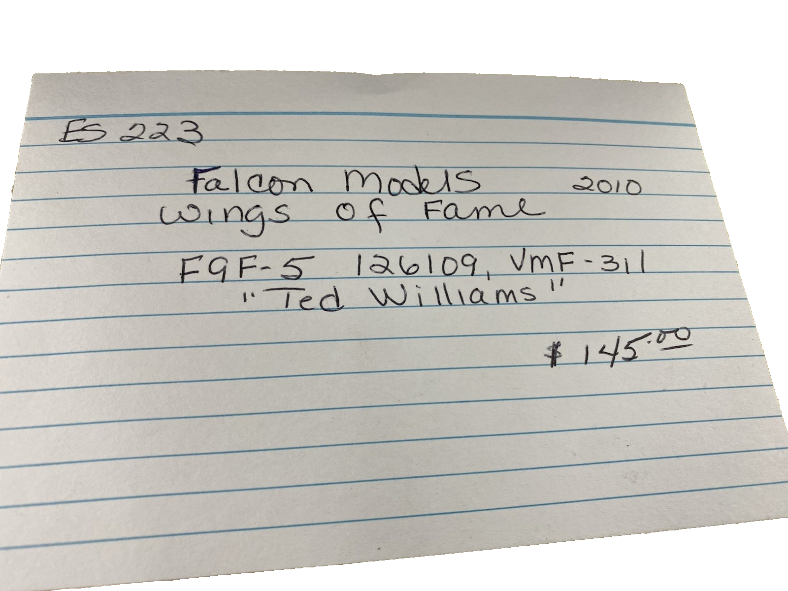 ES 223: Falcon Models 2010 Wings of Fame F9F-5 126109 VMF -311 airplane
