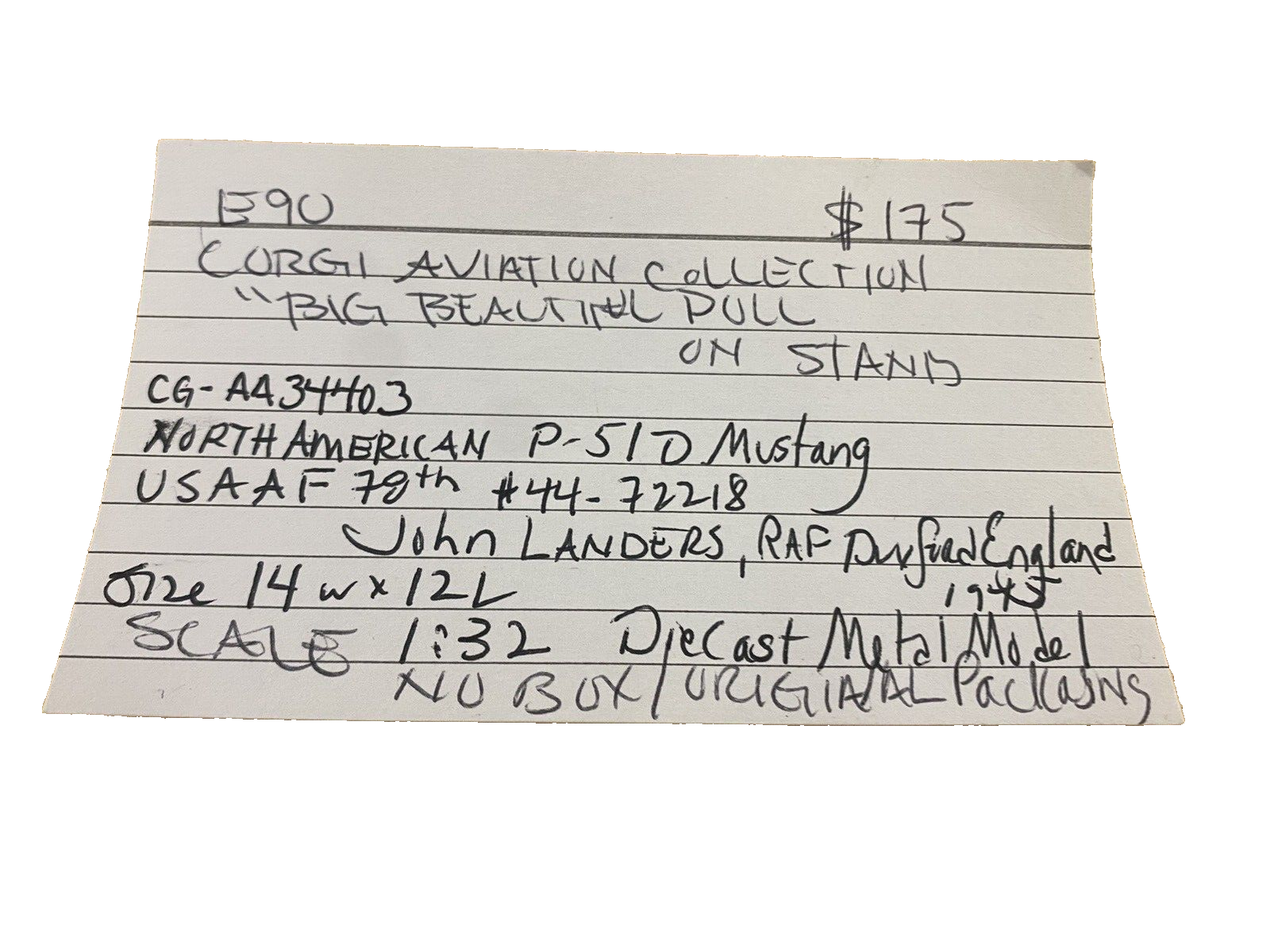 ES 90 : Corgi BIG BEAUTIFUL DOLL North American P 51 Mustang Military Plane
